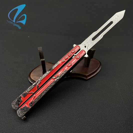 Red Butterfly Sculpture Butterfly Knife Cool Butterfly Relief Balisong Fan Art For Display Only